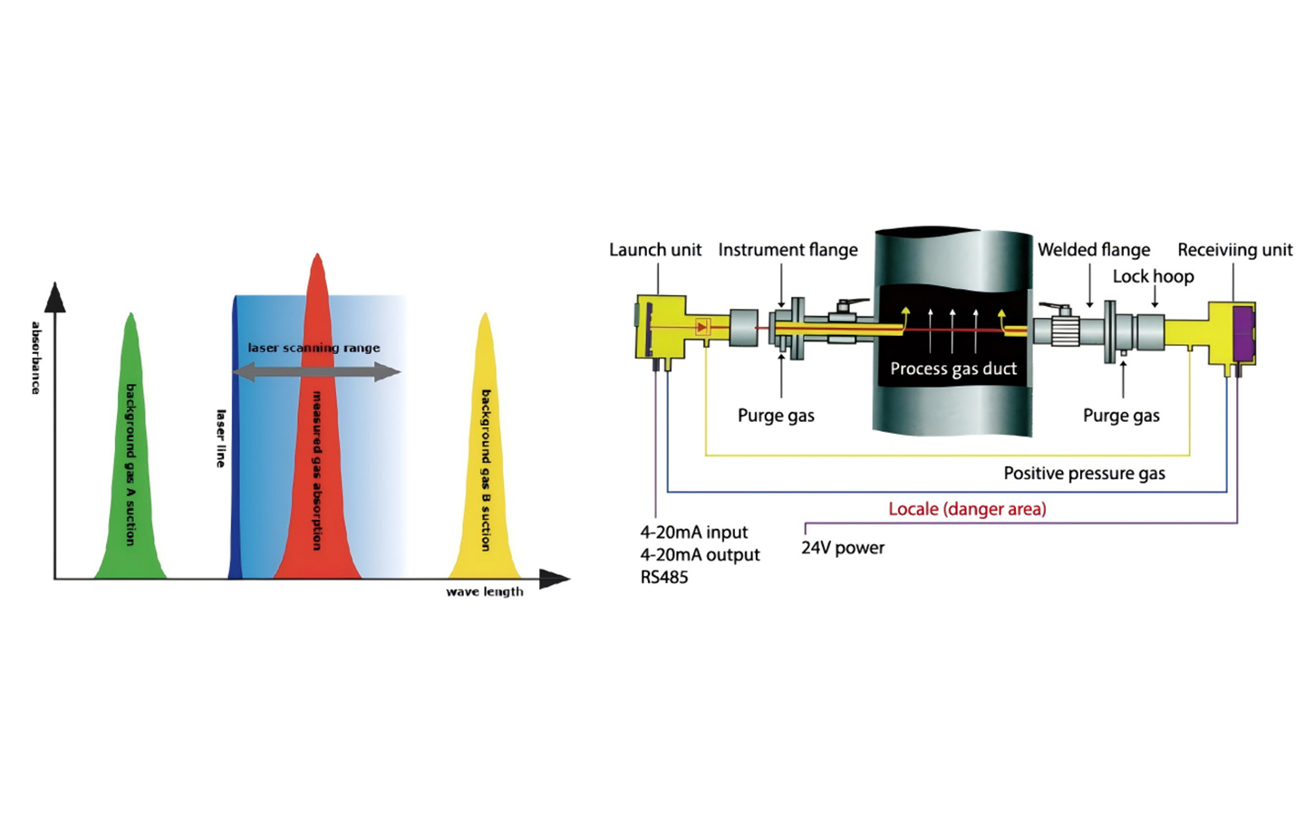 原位激光氣體分析儀采用了可調諧激光吸收光譜技術( Tunable Diode Laser Absorption Spectroscopy ,簡稱TDLAS )的原理,可測量過程氣體成分中的特定氣體的濃度,包括O2、CO、NH3、HCL、HF、H2O、H2S、CH4、CO2等。該氣體分析儀具有靈敏度高、響應速度快、不受背景氣體干擾、非接觸式光學測量等特點,可應用于眾多工業領域氣體排放監測、過程控制等場景,為實時準確地反映氣體濃度變化提供了可靠保證。