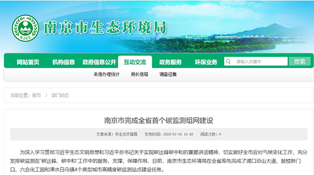 近日,南京生態環境局官網官微發布了關于南京市完成全省首個碳監測建設最新進展南京市生態環境局在全省率先完成了浦口沿山大道、鼓樓新門口、六合化工園和溧水白馬鎮4個典型城市高精度碳監測站點建設任務。